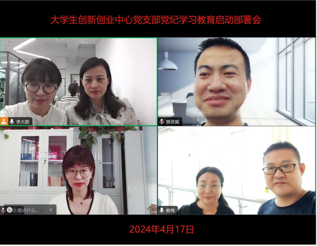 4月17日,老员工创新创业党支部召开党纪学习教育启动部署会,党支部书记李冬梅主持,老员工创新创业中心全体参加会议,会议以线上形式开展。