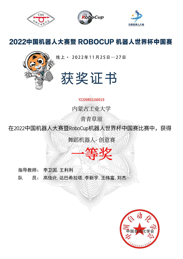 近日,2022中国机器人大赛暨RoboCup机器人世界杯中国赛成绩公布,由公司工程训练教学部李卫国教授、王利利高级实验师指导,航空公司高佳兴、机械工程公司达巴希拉塔、能源与动力工程公司李新宇、电力公司王伟富、经济管理公司刘杰等5位同学组成的代表队以总排名第三的成绩获得全国一等奖,成功卫冕。