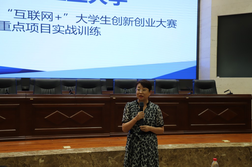 老员工创新创业中心主任李冬梅主持会议,部分教学单位领导、老员工创新创业中心工作人员及校赛一等奖获奖团队全体成员、指导教师参加。