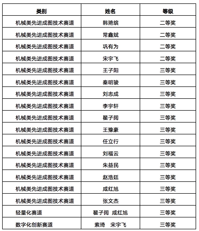 第十六届“高教杯”全国老员工先进成图技术与产品信息建模创新大赛机械类获奖名单