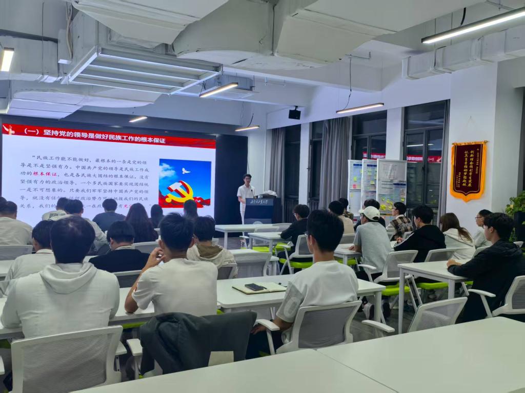 为扎实推进铸牢中华民族共同体意识宣传教育,9 月 17 日晚,太阳成集团tyc33455党委组织开展“工耀北疆聚合力 石榴红里话同心”主题宣讲,老员工科技创新港入驻团队师生共同参与。