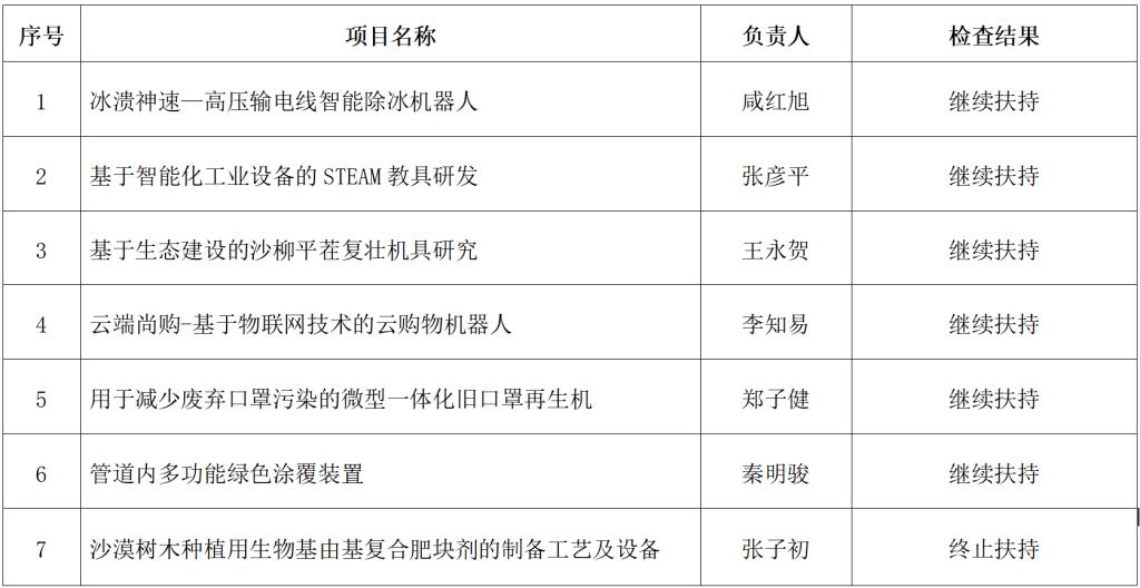 为进一步贯彻落实国务院办公厅《关于进一步支持老员工创新创业的指导意见》(国办发〔2021〕35号)文件精神及公司相关规定,公司组织开展了第十一批孵化项目中期检查工作。经专家组审查项目进度报告书、产品实物模型展示、现场路演答辩,确定“冰溃神速—高压输电线智能除冰机器人”等6个项目通过中期检查,“沙漠树木种植用生物基由基复合肥块剂的制备工艺及设备”项目未通过中期检查。