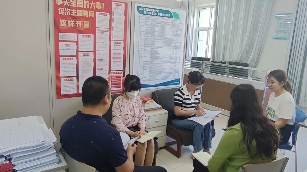 6月5日上午,老员工创新创业中心党支部在明德楼328召开学习贯彻习近平新时代中国特色社会主义思想主题教育读书班第五次学习。党支部书记李冬梅主持,全体党员参加。
