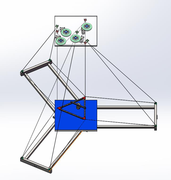 本产品使用自主研发设计的无框架式 3D打印机比较传统3D打印机运输空间小。使用计算机控制的滑轮系统控制绳索的长度,使3D打印机精确的移动到目标位置。