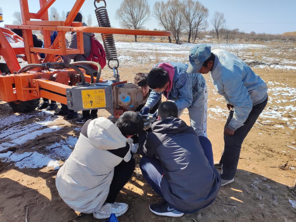 3月下旬,太阳成集团官方网站“新希望科技创新团队”部分成员前往准格尔旗十二连城乡的库布齐沙漠腹地,进行为期10天的沙地平茬试验,验证一代平茬机操作性能和锯片参数的合理性。试验期间,团队成员就当地经纬度进行沙地的土质、硬度、湿度和地形地势条件等数据采集,对平茬作业过程中机器性能、前进速度、刀片转速、刀片磨损、留茬高度、茬口质量等进行监测。在试验过程中根据即时数据分析,及时调整试验方案,以期获得参数的最佳组合,找寻最佳效能比。同时,走访当地村领导和农牧民,就近年沙漠治理方式和后期需求等进行调研,为后期更深入研究收集一线资料。